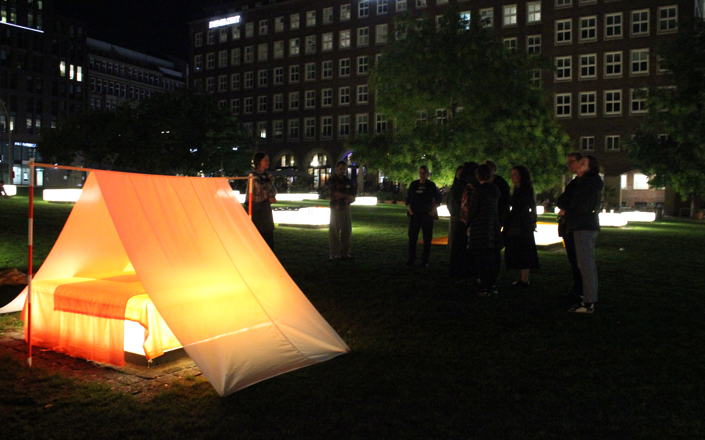 Zum Beginn der dunklen Jahreszeit beleuchten wir den Hammaburg-Platz neu. Wir schaffen eine besondere Atmosphäre in der abendlichen Innenstadt und machen den Platz zu einem Anziehungspunkt. Themen wie Sicherheit im öffentlichen Raum, Lichtverschmutzung (Dark Sky) und die Wahrnehmung öffentlicher Räume im Licht stehen im Mittelpunkt.